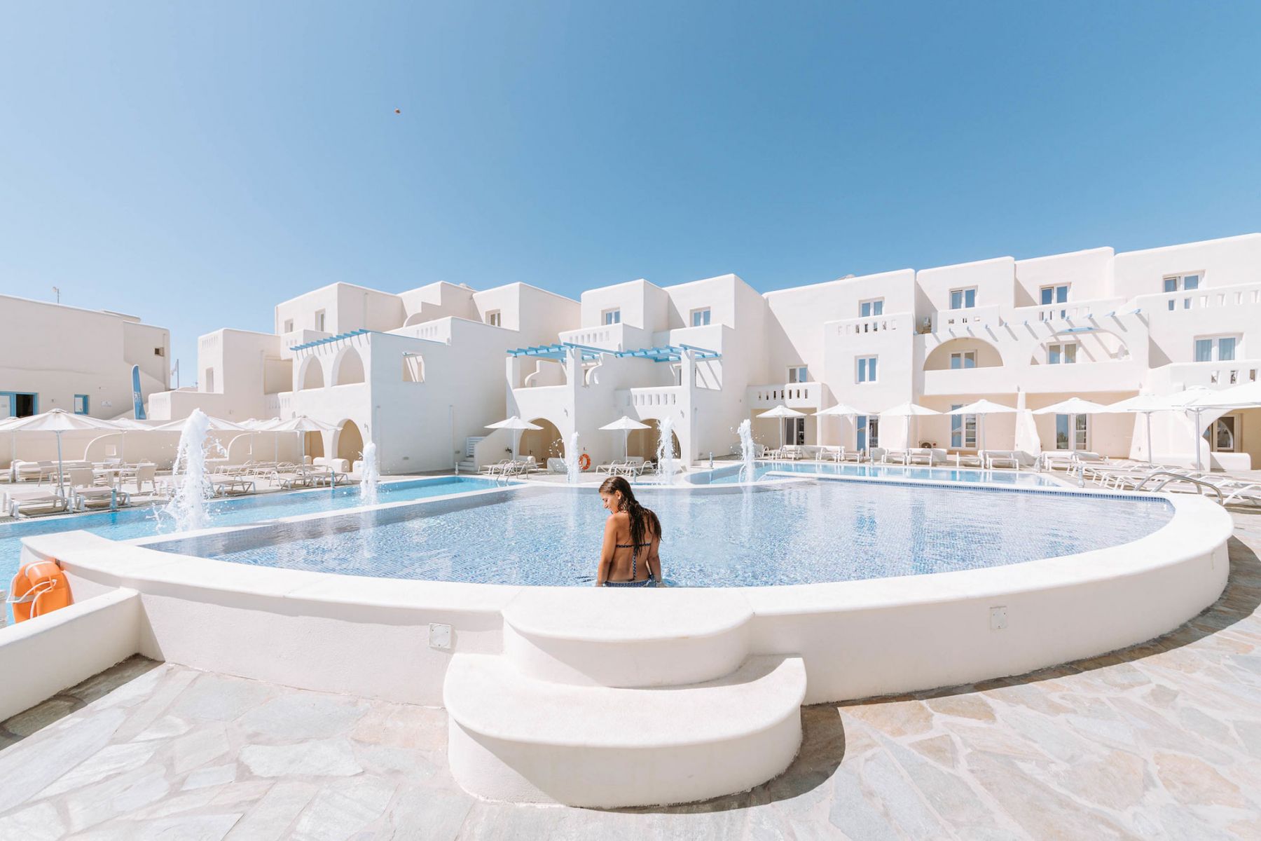 Naxian Emerals is located at a priveledged quiet location in Agios Prokopios - Stelida on Naxos Island, an easy stroll from the golden sand. Agios Prokopios is an amazing beach with calm water, lovely sand, sun umbrellas and sunbeds. Most tourism-related shops such as mini markets, taverns, cafes, car and motorbike rental agencies, are located at the beach’s south part.